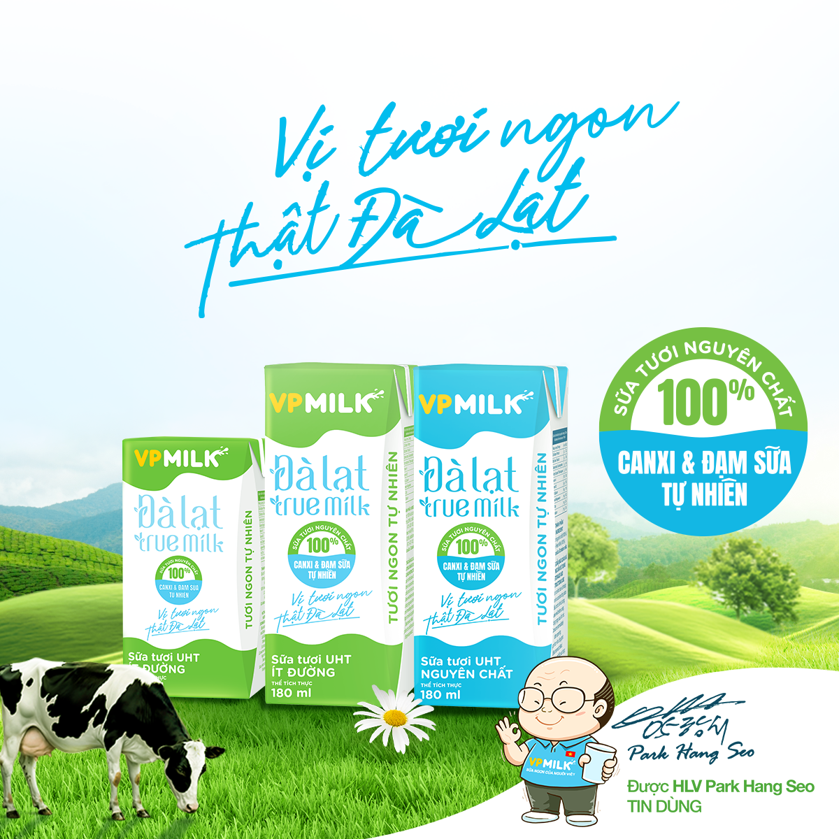 Dòng sữa tươi tiệt trùng UHT VPMilk Đà Lạt True Milk mang trọn tinh túy từ cao nguyên Đà Lạt mát lành.